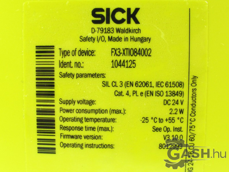 Gyári azonosító(k), típusjelölés(ek): FX3-XTIO84002, 1044125, Flexi Soft