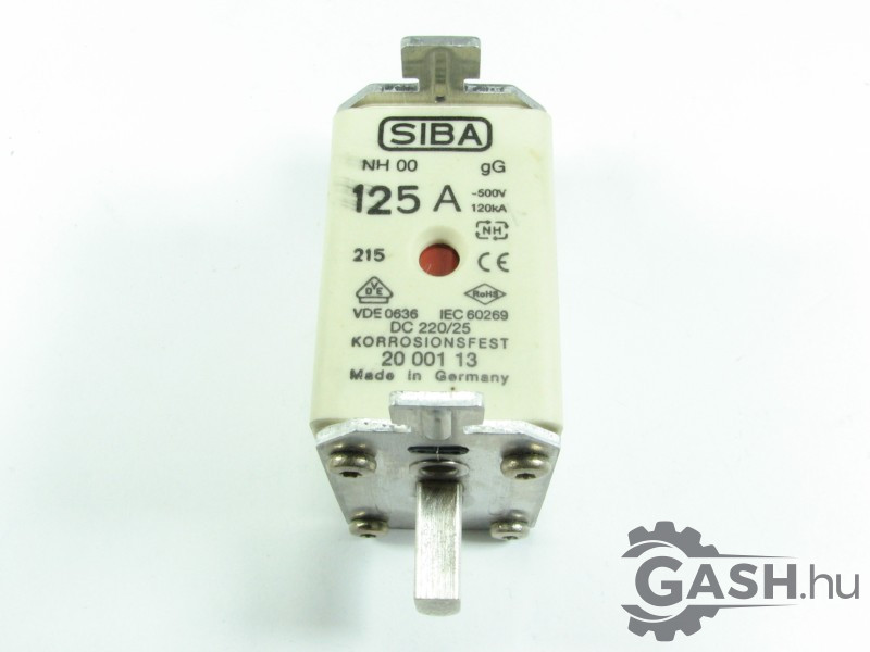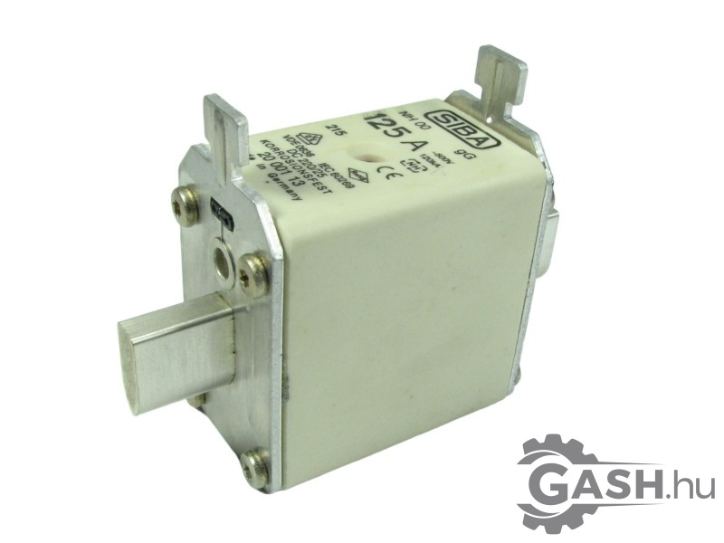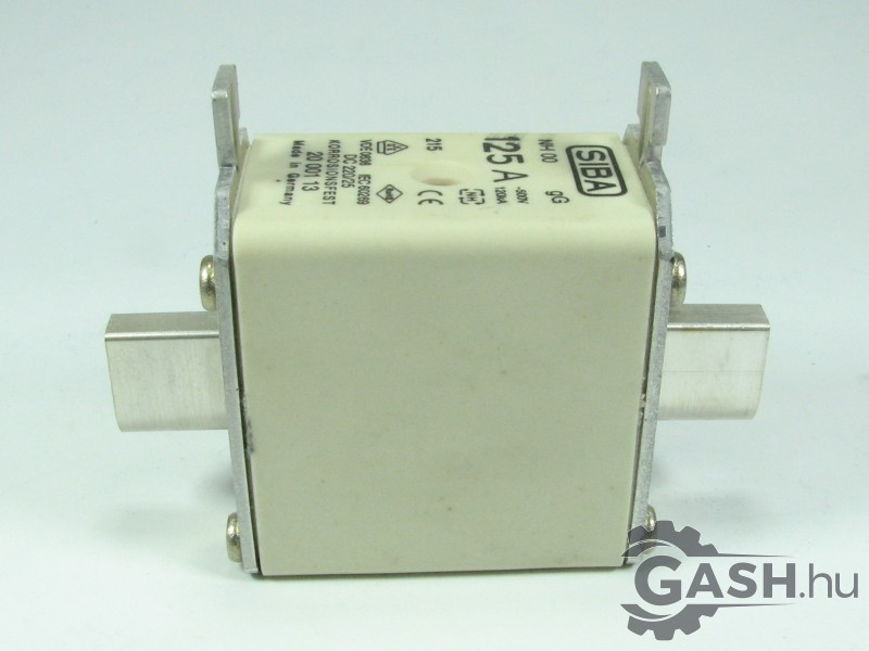 125 A névleges áramú NH-00 méretű gG betét, ~120 kA zárlati képességgel, 500 V AC-ig.