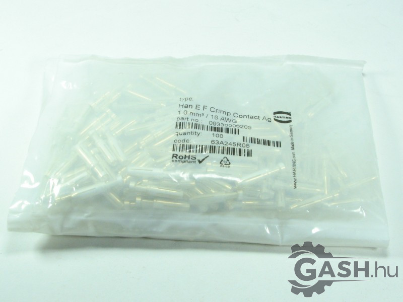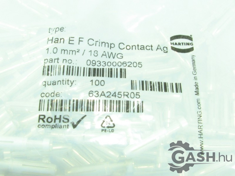 Gyári azonosító(k), típusjelölés(ek): 09 33 000 6205, Han E F Crimp Contact Ag 1.0 mm²/ 18 AWG,