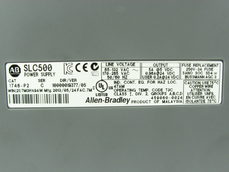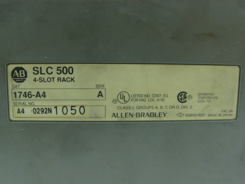 Gyári azonosító(k), típusjelölés(ek): SLC500, 1746-A4, 4 slot