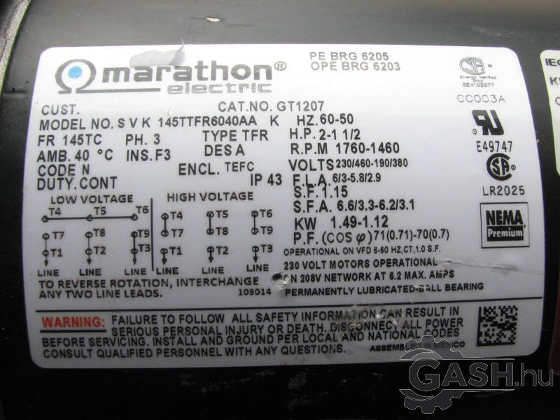 Villanymotor, Marathon 145TTFR6040AA GT1207, 145TC inverteres